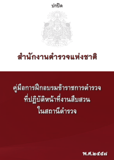 O8 คู่มือการปฏิบัติงานสำหรับเจ้าหน้าที่ งานอำนวยการ คู่มือปฏิบัติงานอำนวยการ (งานธุรการและพัฒนากำลังพล) คู่มือปฏิบัติงานอำนวยการ (งานศูนย์ปฏิบัติการสถานีตำรวจ) คู่มือปฏิบัติงานอำนวยการ (งานกำลังพล) ปฏิบัติงานอำนวยการ (งานวินัย) คู่มือปฏิบัติงานอำนวยการ (งานสวัสดิการและสิทธิประโยชน์อื่น) คู่มือปฏิบัติงานอำนวยการ (งานยุทธศาสตร์) คู่มือปฏิบัติงานอำนวยการ (งานงบประมาณ) คู่มือปฏิบัติงานอำนวยการ (งานพัสดุ) คู่มือปฏิบัติงานอำนวยการ (งานการเงิน) คู่มือปฏิบัติงานอำนวยการ (ระบบการควบคุมการเงินของหน่วยงานย่อย) คู่มือปฏิบัติงานอำนวยการ (การจัดวางระบบการควบคุมภายในและการติดตามประเมินผล) ระเบียบเกี่ยวกับการจัดสวัสดิการ งานป้องกันปราบปราม คู่มือการฝึกอบรมข้าราชการตำรวจที่ปฏิบัติหน้าที่งานป้องกันปราบปรามในสถานีตำรวจ คู่มือปฏิบัติงานของเจ้าหน้าที่ตำรวจสายงานป้องกันปราบปราม 2564 คู่มือการบริหารงานป้องกันและปราบปรามอาชญากรรม คู่มือป้องกันอาชญากรรมข้ามชาติ คัมภีร์ปราบหนี้นอกระบบ แนวทางการปฎิบัติงานว่าด้วยกฎการใช้กำลังและอาวุธ การนำยุทธวิธีตำรวจมาใช้ให้สอดคล้องกับหลักกฎหมายว่าด้วย การค้น การจับ การควบคุมตัว งานจราจร คู่มือการฝึกอบรมข้าราชการตำรวจที่ปฏิบัติหน้าที่งานจราจรในสถานีตำรวจ งานสืบสวน คู่มือการฝึกอบรมข้าราชการตำรวจที่ปฏิบัติหน้าที่งานสืบสวนในสถานีตำรวจ คู่มือการสืบสวน งานสอบสวน คู่มือปฏิบัติงานสอบสวน (คดีทั่วไป) คู่มือปฏิบัติงานสอบสวน (คดียาเสพติด) คู่มือปฏิบัติงานสอบสวน (คดีคุ้มครองผู้บริโภค) คู่มือปฏิบัติงานสอบสวน (คดีเศรษฐกิจ) คู่มือปฏิบัติงานสอบสวน (คดีสิ่งแวดล้อม) คู่มือพนักงานสอบสวนนิติวิทยาศาสตร์กับการสอบสวนคดีอาญา คู่มือการดำเนินคดีฐานฟอกเงิน คู่มือการสอบสวนคดีความผิดเกี่ยวกับการค้ามนุษย์ ศูนย์บริหารงานสอบสวนสำนักงานตำรวจแห่งชาติ กฏหมายวิธีพิจารณาความอาญา ประมวลกฏหมายอาญาฉบับสมบูรณ์ การอำนวนความุติธรรมในคดีอาญา ปรับปรุงข้อมูลเมื่อ 9 เม.ย.68 Facebook iconFacebookTwitter iconTwitterLINE iconLine
