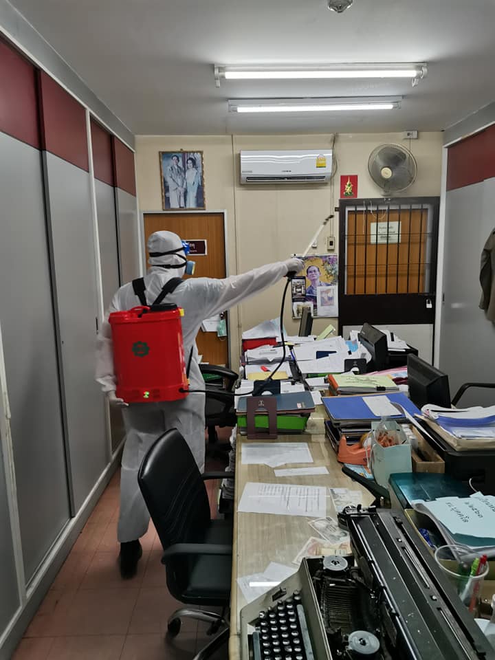 มอบหมายให้ พ.ต.ท.นราวุฒิ รักษาวงศ์ รอง ผกก.ป.สน.บุคคโล ควบคุมข้าราชการตำรวจฝ่ายป้องกันปราบปรามในการฉีดพ่นสาร BKC เพื่อกำจัดเชื้อโรคและควบคุมการแพร่ระบาดของไวรัสโควิด-19 โดยทำการฉีดพ่นบริเวณห้อง One Stop Service,ห้องพนักงานวิทยุ,ห้องสายตรวจ,ห้องขัง, ห้องธุรการแต่ละฝ่าย,ห้องน้ำ,ห้องประชุม, ห้อง ผกก. และบริเวณทางเดิน