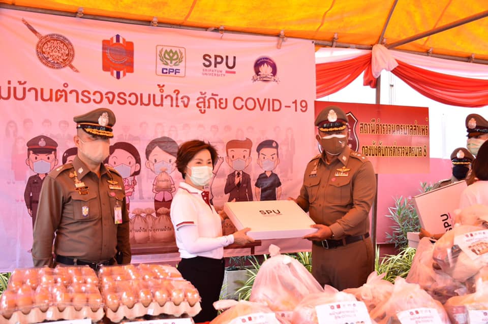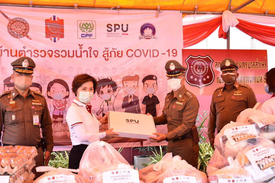 ดร.บุษบา ชัยจินดา นายกสมาคมแม่บ้านตำรวจและคณะสมาคมแม่บ้านตำรวจ มอบถุงรวมน้ำใจ สู้ภัยโควิดให้กับข้าราชการตำรวจ สน.บุคคโล-สน.สำเหร่ เป็นตัวแทนรับมอบเพื่อนำไปมอบให้กับชุมชนในพื้นที่รับผิดชอบ ที่ได้รับผลกระทบจากการเเพร่ระบาดของไวรัสโควิด1-9 โดยมี