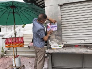 เจ้าหน้าที่ตำรวจ สน.บุคคโล ติดป้ายประชาสัมพันธ์ เตือนภัยออนไลน์ ตามจุดต่างๆใน ในพื้นที่
