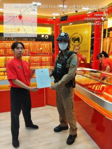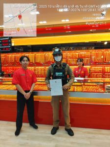 พ.ต.ท.พฤฒ แก่นวงศ์ รอง ผกก.ป.สน.บุคคโล มอบหมายให้ บุคคโล 121-1 ประชาสัมพันธ์และขอความร่วมมือร้านค้าทองเยาวราชกรุงเทพฯ สาขาตลาดเดินเล่น พร้อมส่งหนังสือขอความร่วมมือติดตั้งกล้องวงจรปิดเพิ่ม