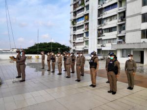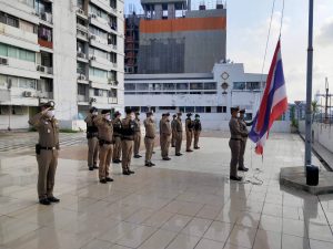 พร้อมข้าราชการตำรวจ เข้าแถวเคารพธงชาติ สวดมนต์ไหว้พระกล่าวอุดมคติตํารวจ , ราชสวัสดิ์ , สิบโม้ , สะเจ