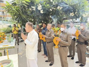 👨✈️พ.ต.อ.ฉัฐกิตติ์ ผดุงจันทน์ธนัย ผกก.สน.บุคคโล 👮♂️พ.ต.ท.พฤฒ แก่นวงศ์ รอง ผกก.ป.สน.บุคคโล 👮♂️พ.ต.ท.เฉลิมพล เกรียท่าทราย รอง ผกก.จร.สน.บุคคโล 👮♂️พ.ต.ท.ประเสริฐ จันทร์อักษร รอง ผกก.สส.สน.บุคคโล 🔹สารวัตรทุกสายงาน 🔸ทีมงาน ตชส.สน.บุคคโล 🔹️ข้าราชการตำรวจ สน.บุคคโล 🔸แม่บ้านตำรวจ สน.บุคคโล ร่วมถวายเครื่องสักการะบูชา และไหว้ศาลหลวงปู่ชัยมงคล ศาลสมเด็จพระเจ้าตากสินมหาราช ศาล ตา-ยาย ศาลพญานาคราช เพื่อเป็นศิริมงคลแก่ข้าราชการตำรวจ ณ ศาลพระภูมิเจ้าที่ สน.บุคคโล ถนนเจริญนคร แขวงสำเหร่ เขตธนบุรี กทม.