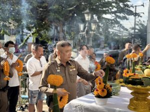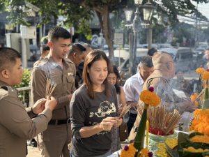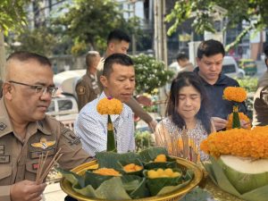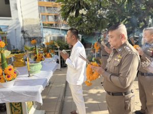 เจ้าหน้าที่ตำรวจ ร่วมถวายเครื่องสักการะบูชาและไหว้ศาลประจำ สน.